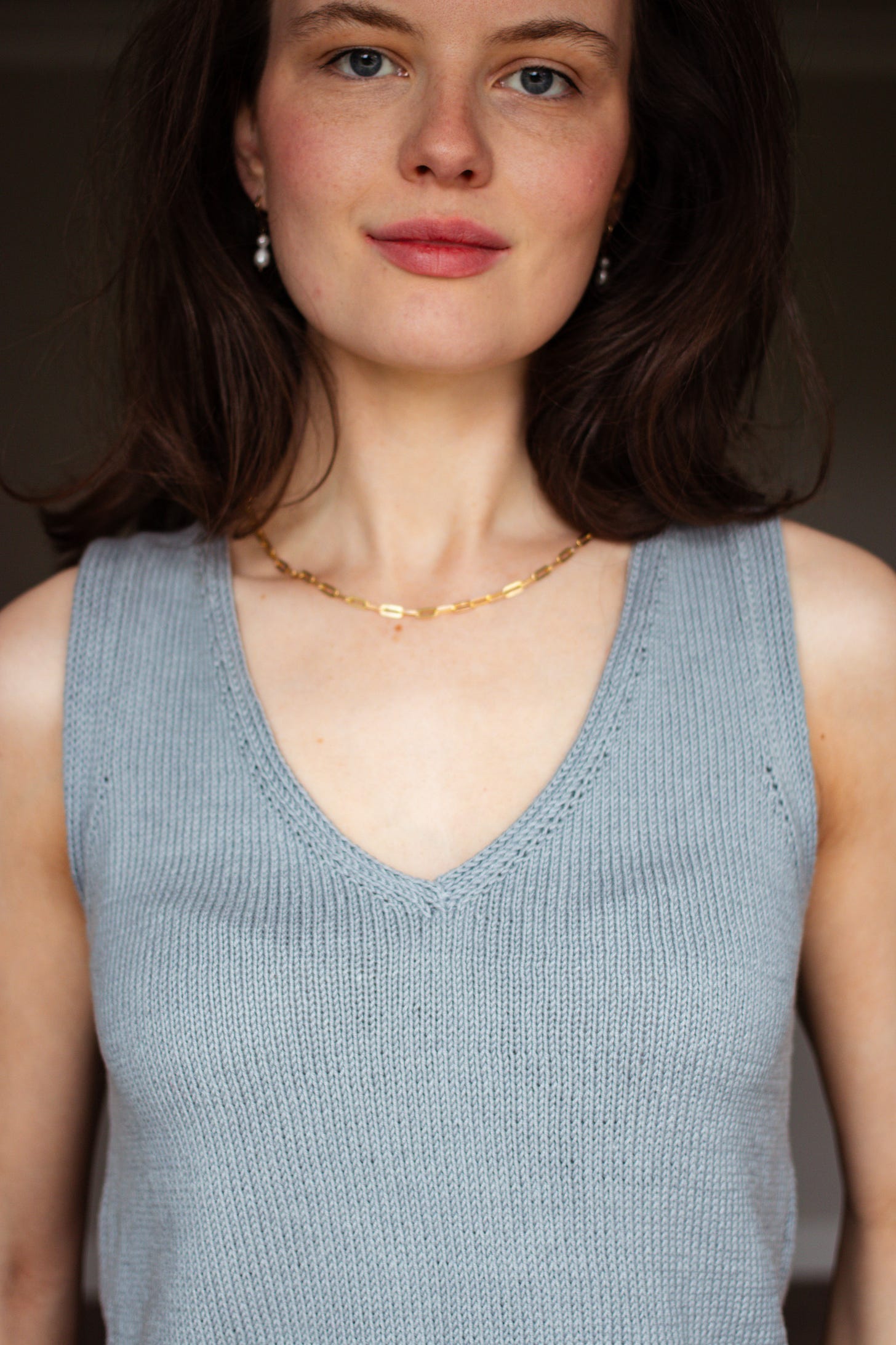 So the edgings lie flat, the armholes cover your bra, and the final element I knew I had to nail was the depth and shape of the V-neck.